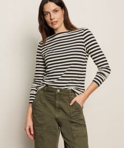 Sanctuary Clothing Clothing Sweaters & Cardis Boatneck Long Sleeve Tee Light Oat/black Stripe
