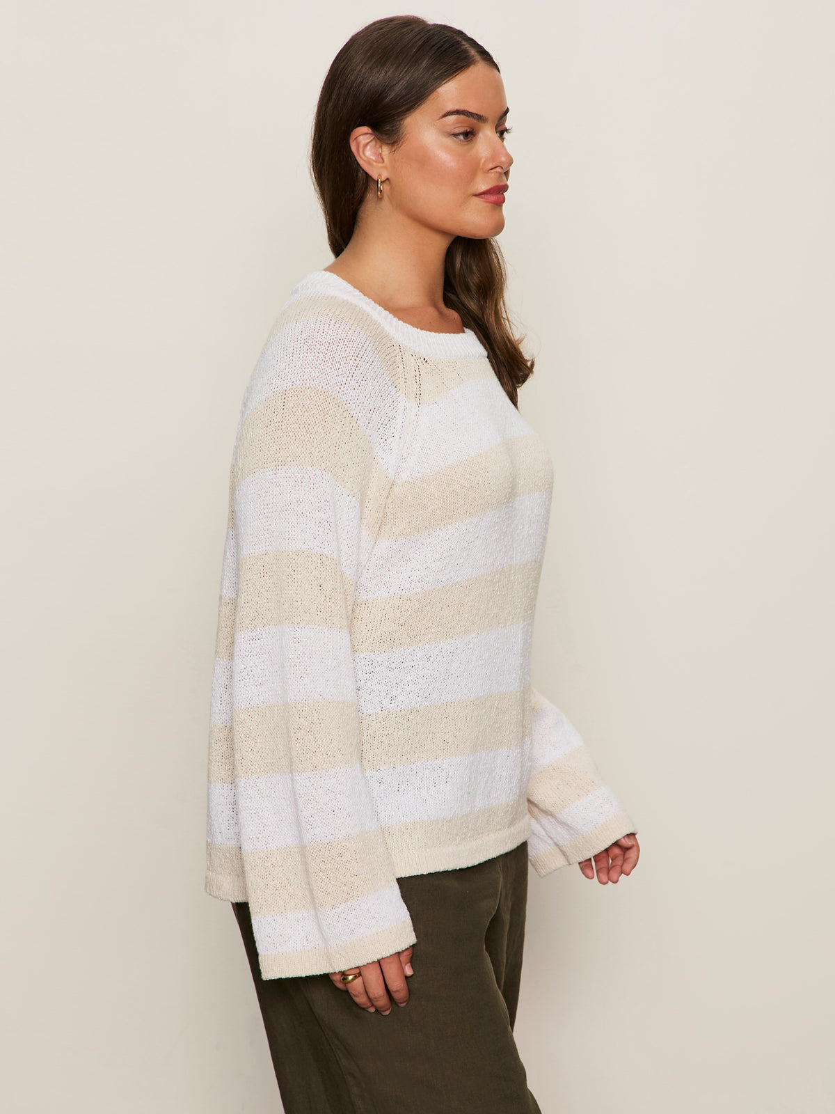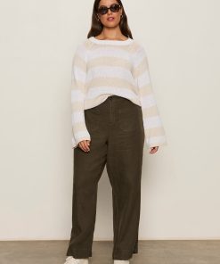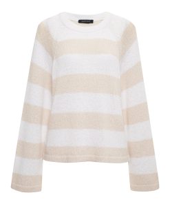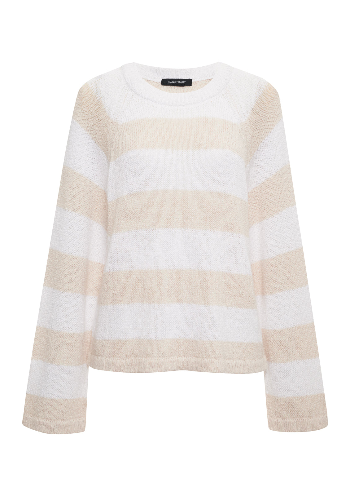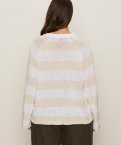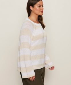Sanctuary Clothing Clothing Sweaters & Cardis Textured Raglan Crew Sweater White/ Light Oat Stripe Extended Sizing