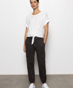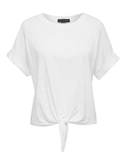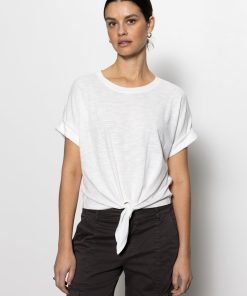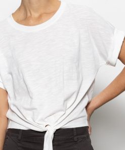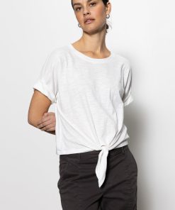 A knotted tie and rolled cuffs add understated casual chic to this essential slubbed cotton crew neck t-shirt with dropped shoulders.